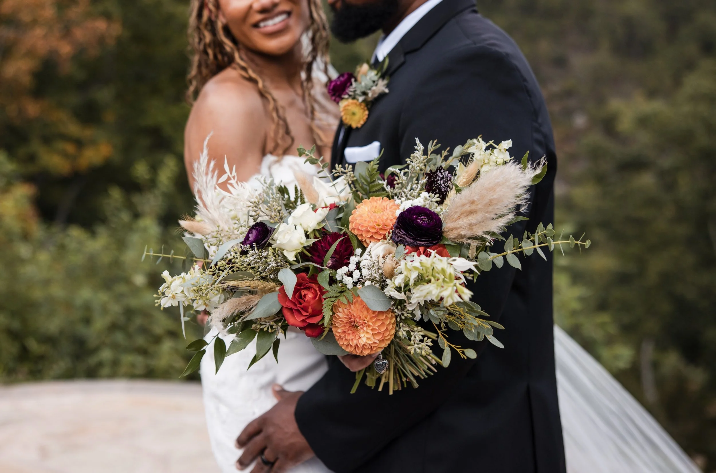 These florals by Vintage Floral Designs were absolutely stunning. The warm, moody colors paired perfectly with the greenery of the mountainside.
